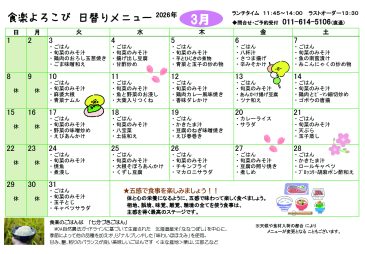 3月のメニューはこちらです♪