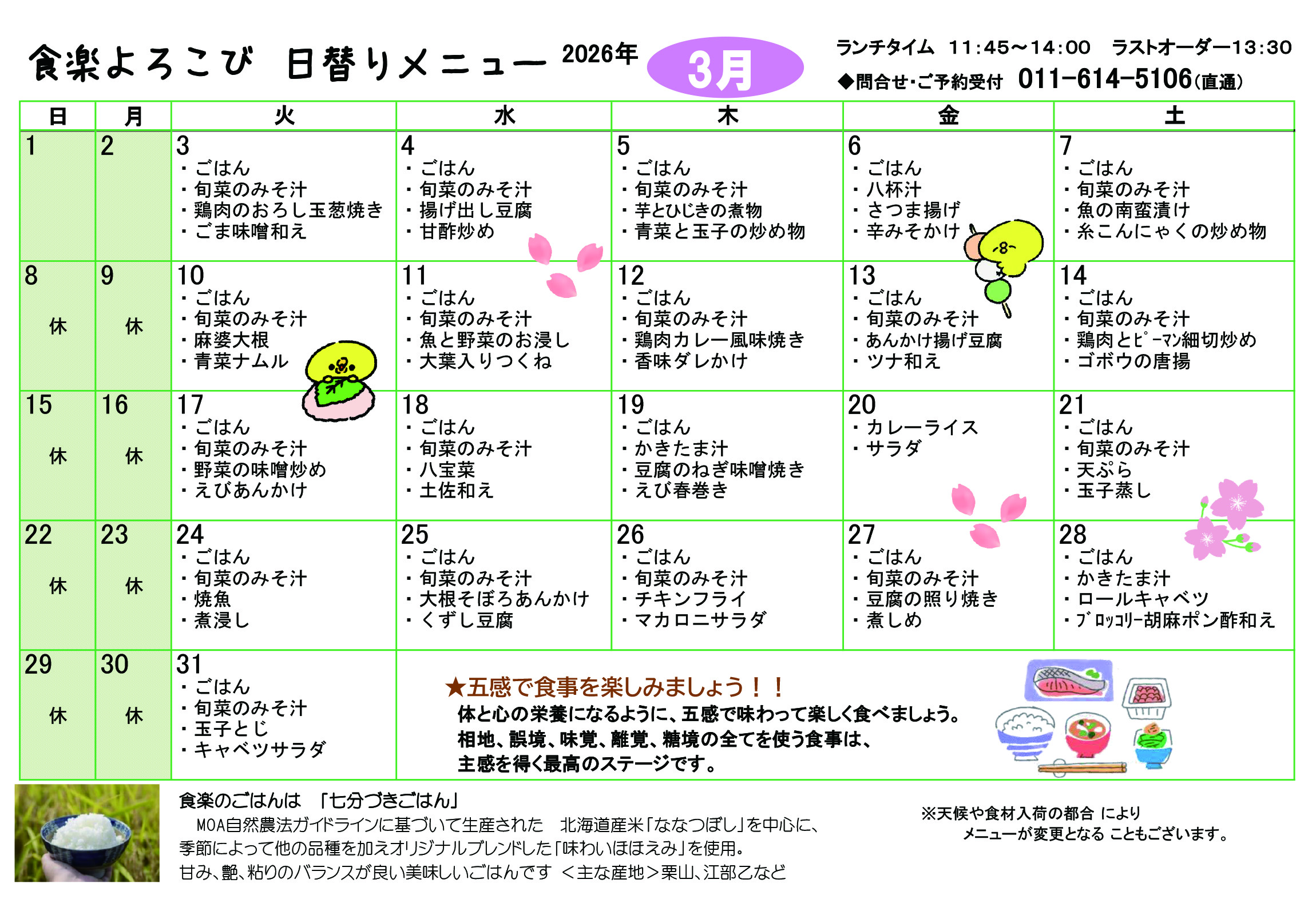 011-614-5106(日曜・月曜 休業)