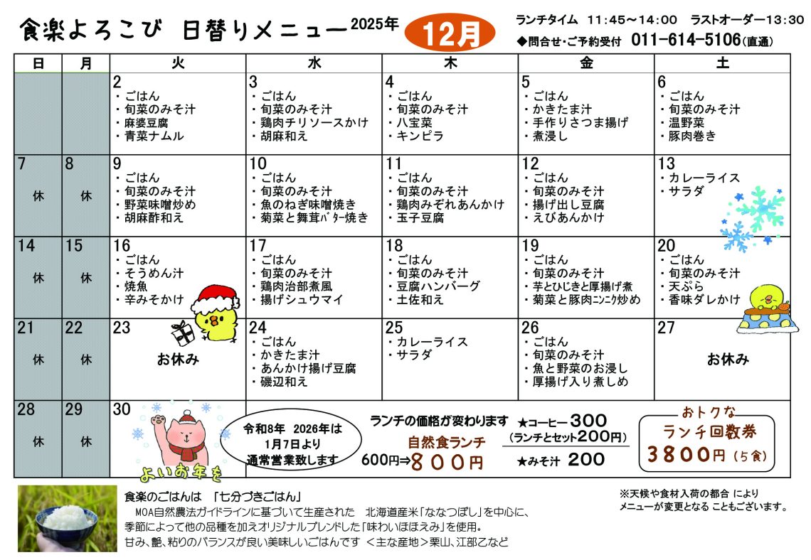 日頃より自然食レストラン「食楽よろこび」をご利用いただきありがとうございます。