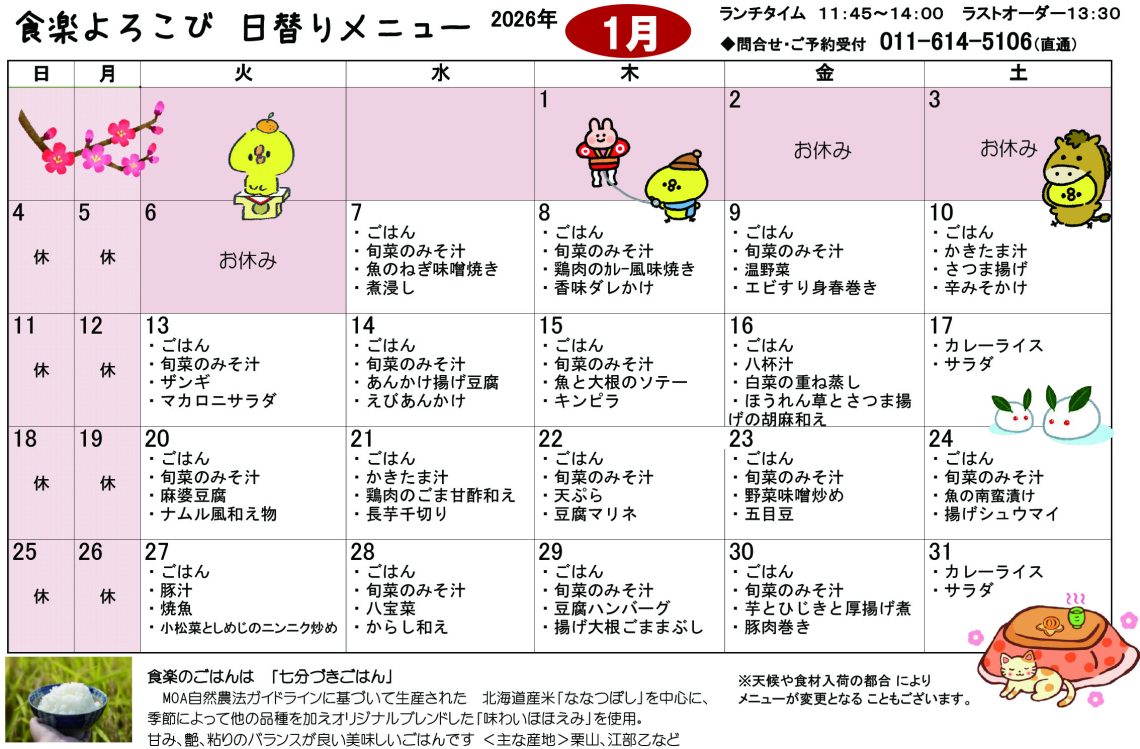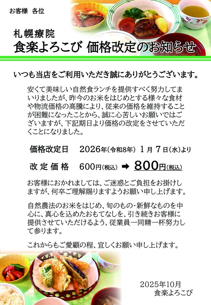 日頃より自然食レストラン「食楽よろこび」をご利用いただきありがとうございます。